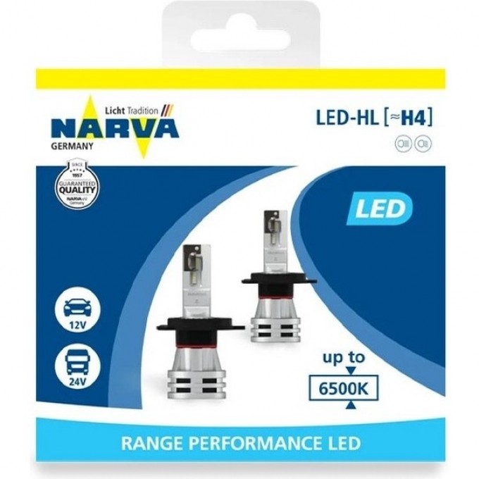 Лампа NARVA RANGE PERFORMANCE LED H4 12/24V 24W P43t-38 2 шт. 67762980